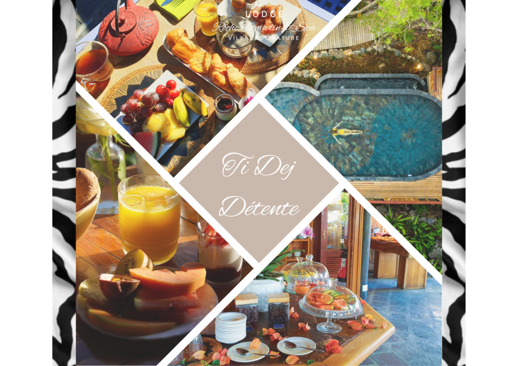 « Commencez la journée en toute sérénité ! Rejoignez-nous pour un Ti Déj Détente : buffet gourmand et accès à la piscine tous les jours de 9h à 12h pour seulement 30€ par personne. Réservez vite au 0262 44 66 88 ! » ☀️